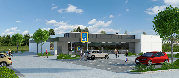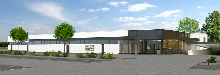 Architektur-Rendering für Einkaufsmärkte, Gewerbehallen, Firmenneubau.