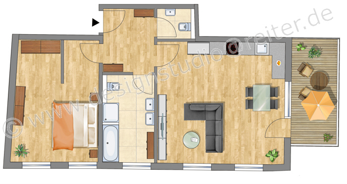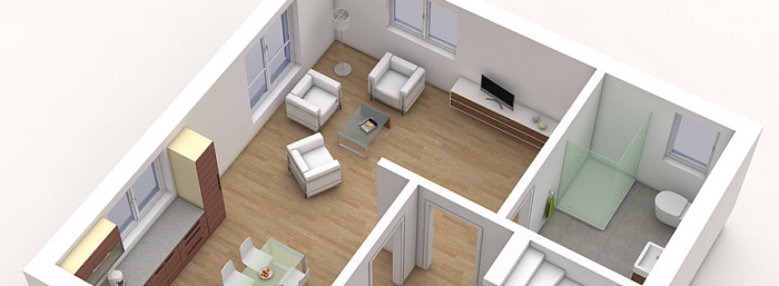 Aus Plänen gestalten wir individuell illustrierte Grundrisse für den gesamten Wohnungsbau: Wohnanlagen, Mehrfamilienhäuser, Reihenhäuser und Wohnhäuser.